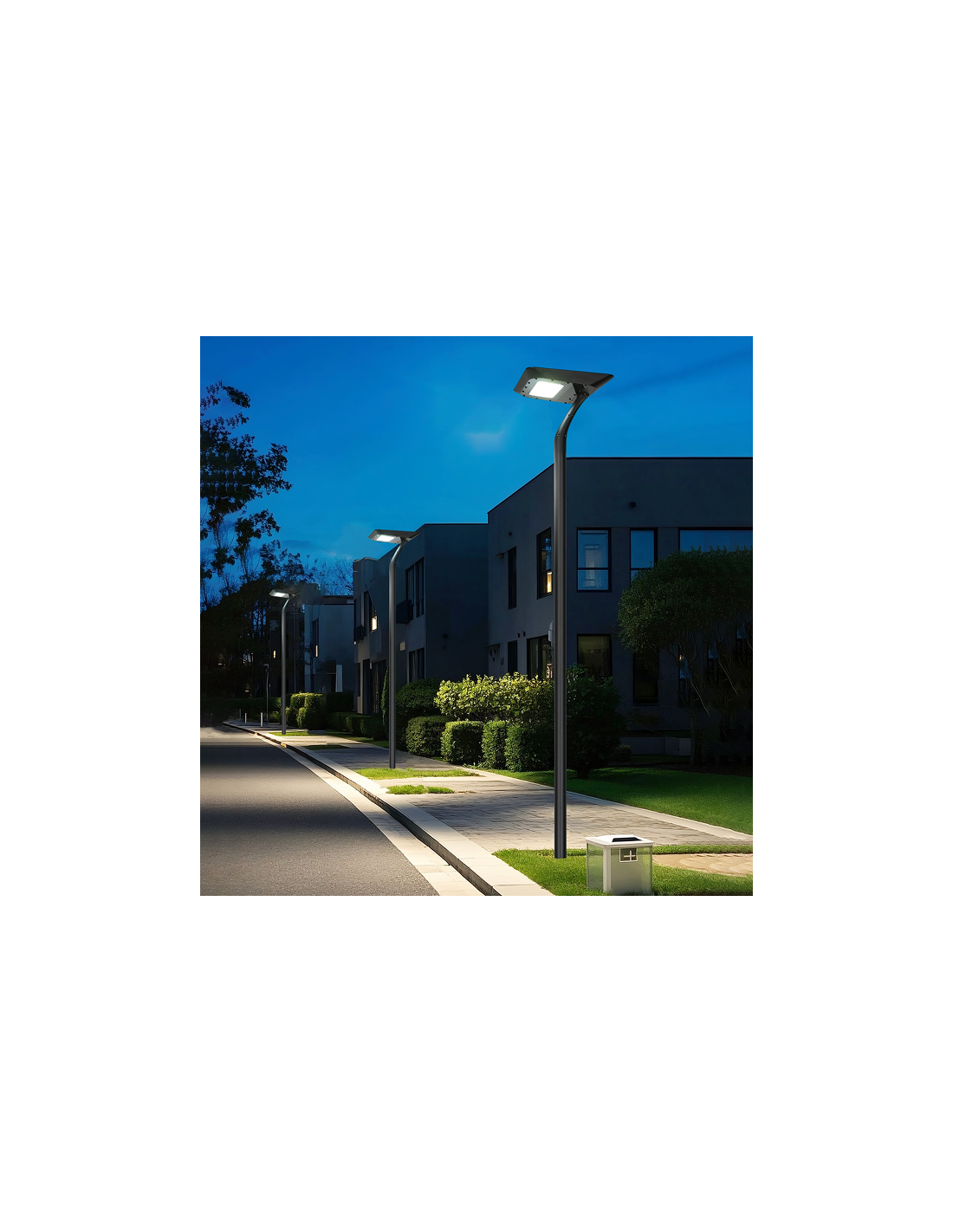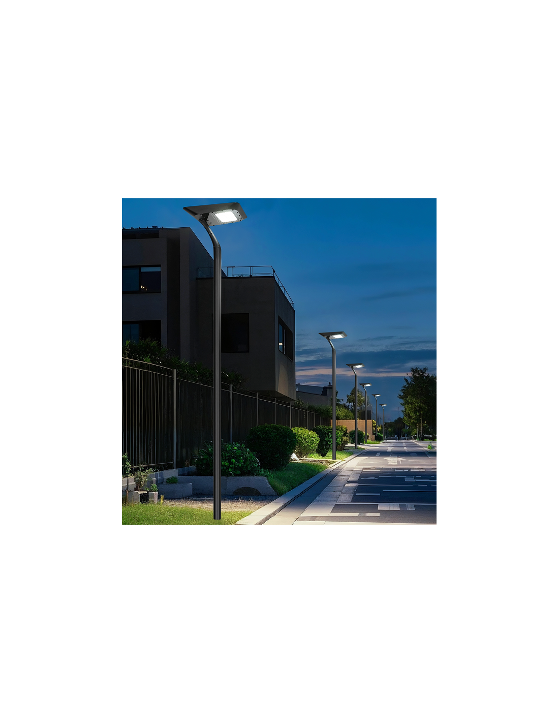 This solar-powered lamp is the ideal product for independent lighting all year round. Its aesthetic design is perfectly suited to urban lighting, and its luminous flux of 1050 Lumens provides effective illumination for driveways, roads, gardens, parking lots, parks, company premises, etc.