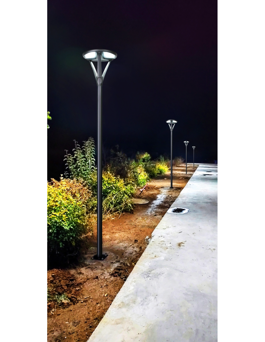 Ce lampadaire solaire émet une lumière d'une température de couleur Blanc Froid ou Blanc Chaud (3000K à 6500K) orientée vers le sol, lui permettant d'être dans le respect des règlementations de pollution lumineuse en vigueur : ULOR <1%.